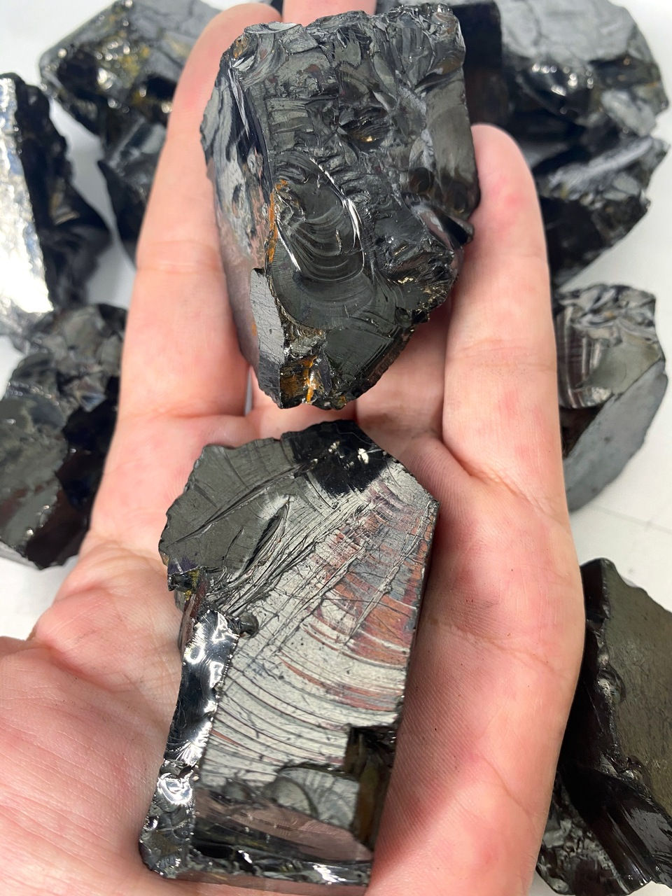 Please note on my website I do not sell Petrosky Shungite. I sell only Elite Noble Shungite To make water and in jewelry form and then the Type II Black Shungite for healing, EMF protection and else. There is a full catalog of products created with this Shungite. You will find them in Polished form or in it's natural rough form.